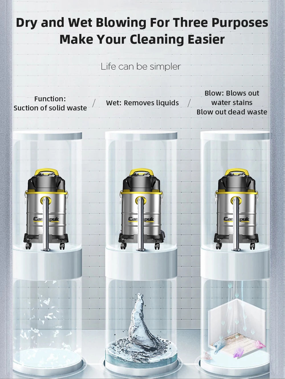 3 in 1 Vacuum Cleaner 3300W Wet and Dry Vacuum Cleaner Industrial Vacuum Cleaner for Hotels Malls Warehouses Car Washes