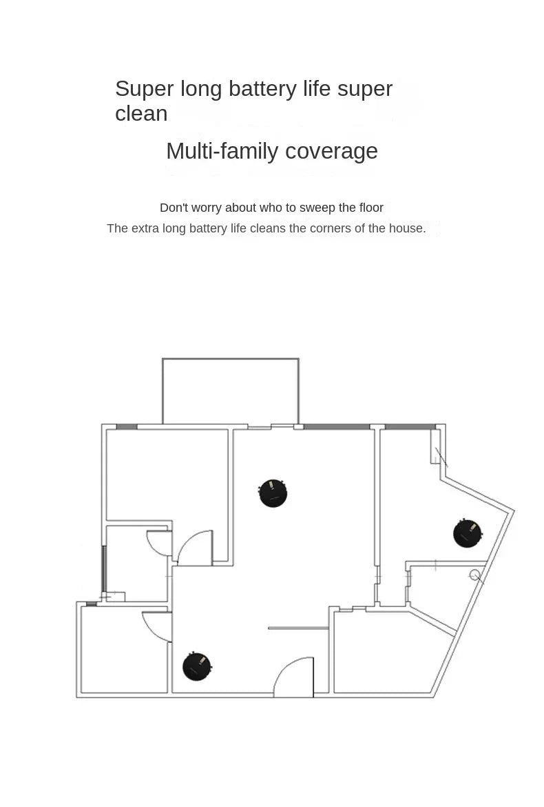 2. Ultra-thin body. At just 6.5 cm/2.56 inches thick, the thinner body and low profile allow the robot vacuum to reach every corner and tight spaces with ease. Easily clean a room of about 120-150㎡.