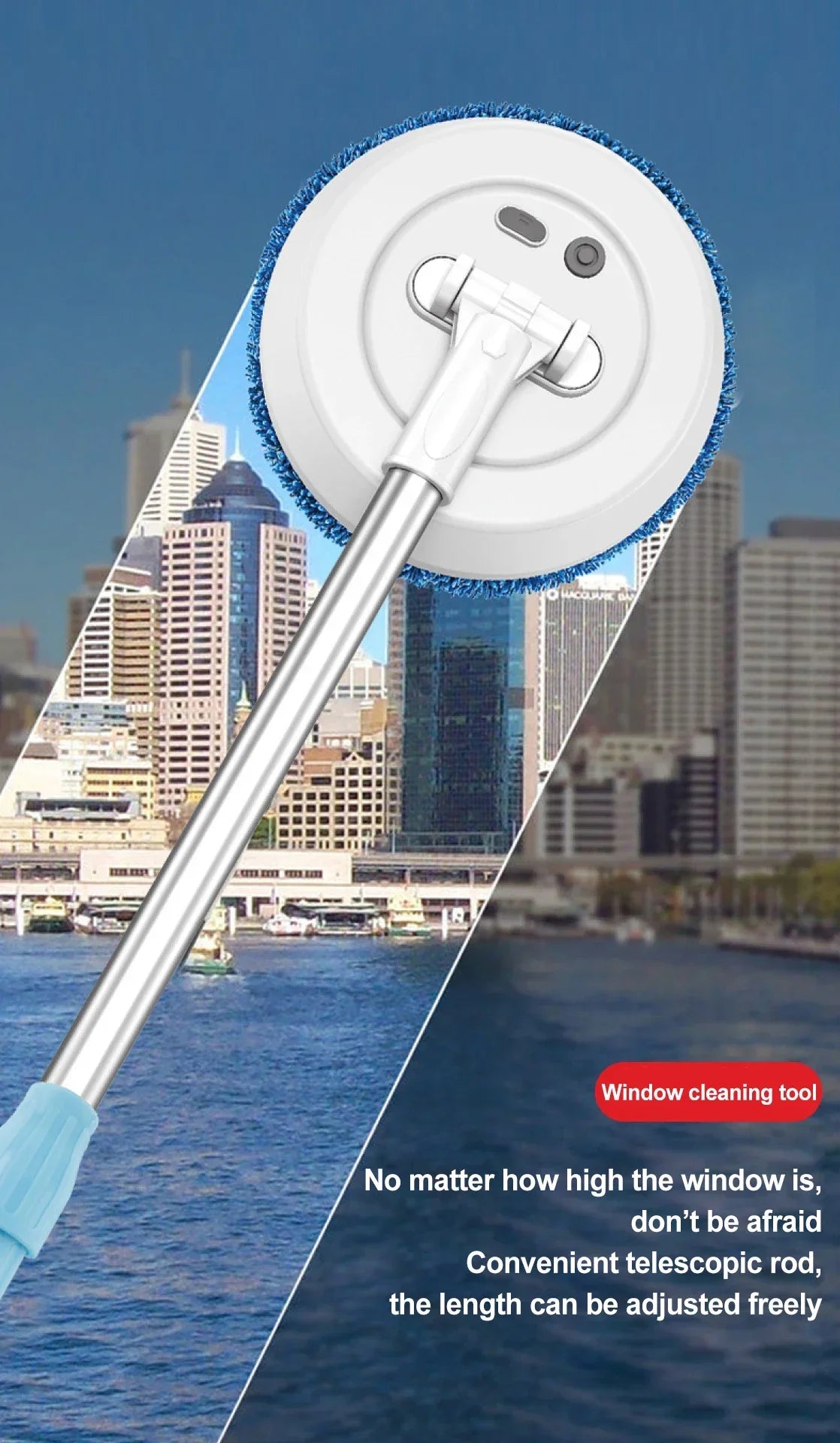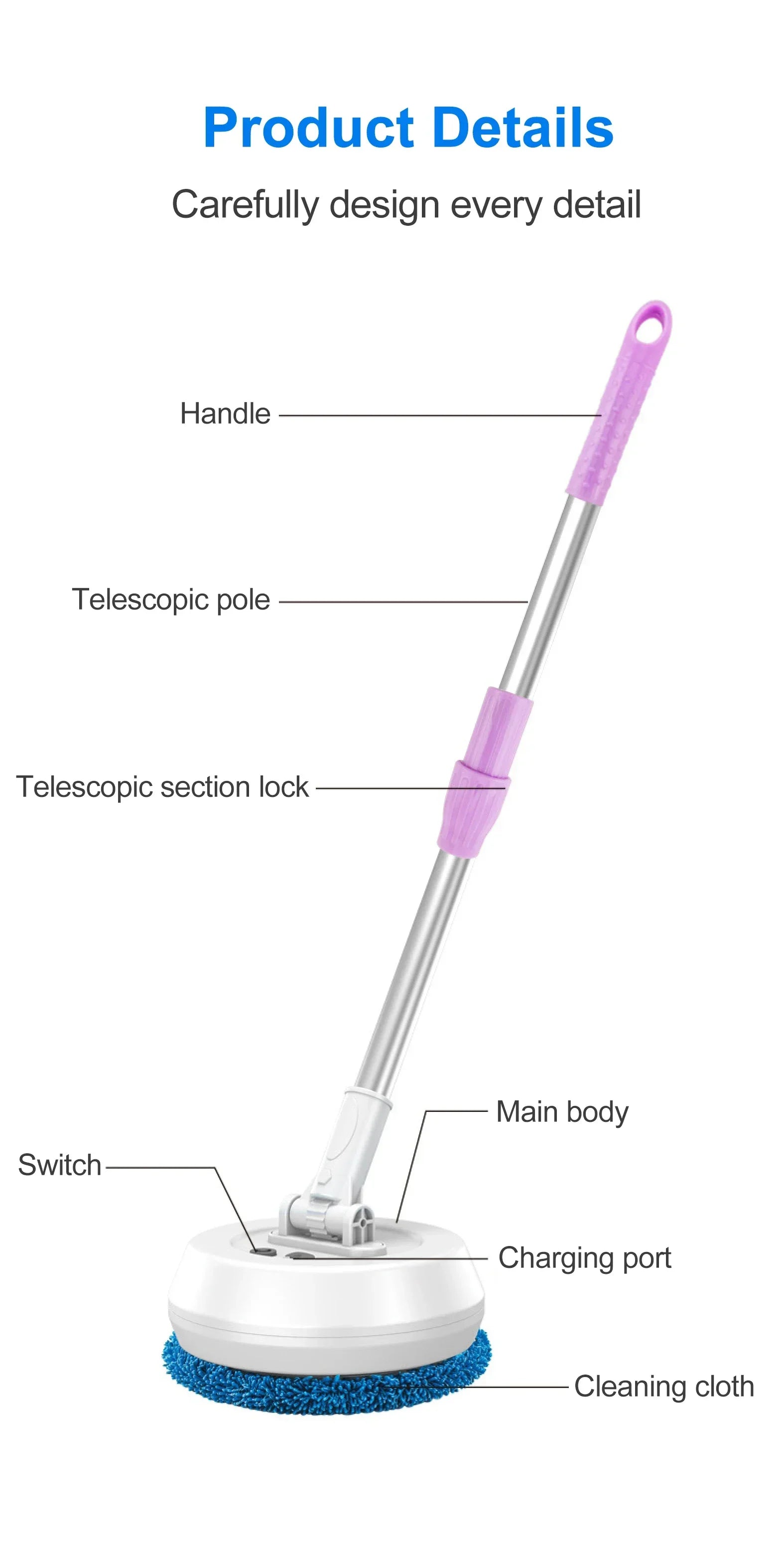 4. Long handle: Extending the telescopic rod, the length of the telescopic rod can be freely adjusted, and it is easy to clean up to 3 meters high