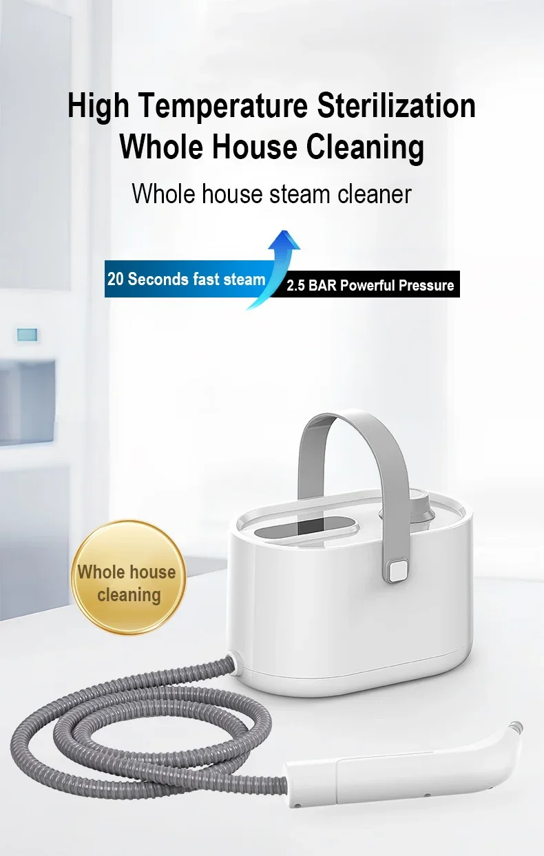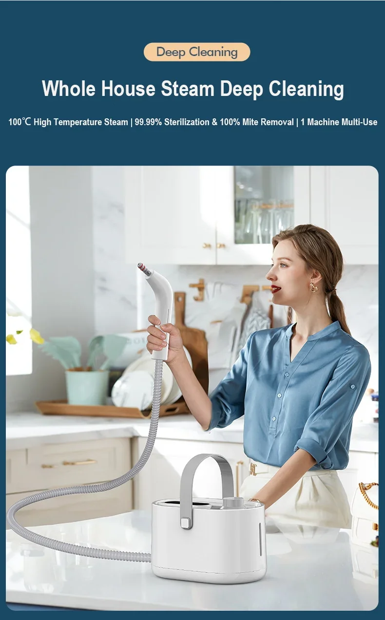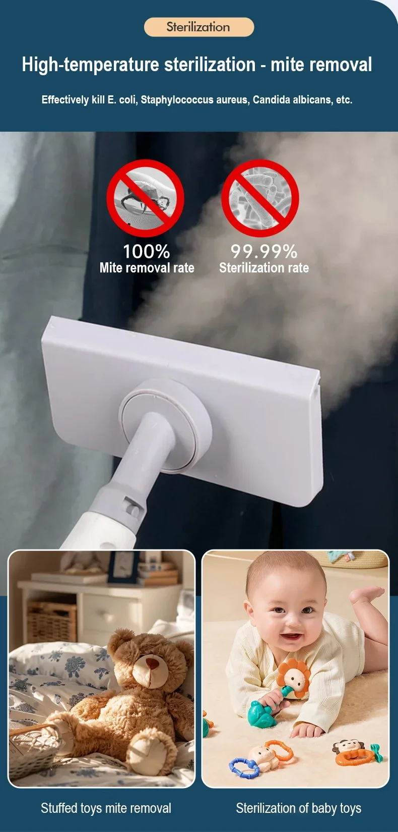 It continuously outputs high-pressure steam to penetrate the crevices for deep cleaning, and the high-temperature physical sterilization rate is as high as 99.9%, effectively removing mites and bacteria from mattresses, sofas and other household items.