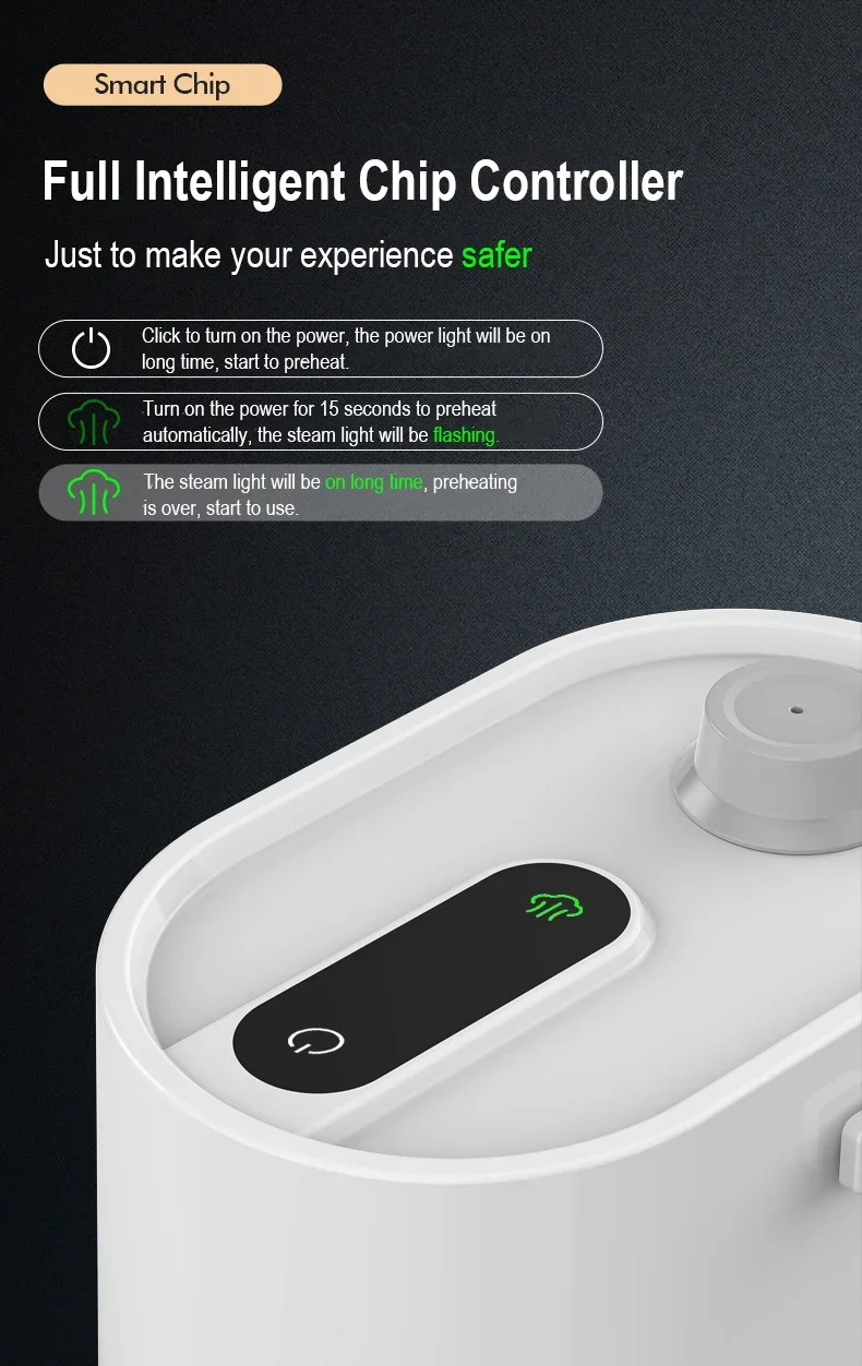 Intelligent touch switch, 3 seconds fast steam discharge; Equipped with anti-scald protection lock and automatic power-off function, it is safer to use.