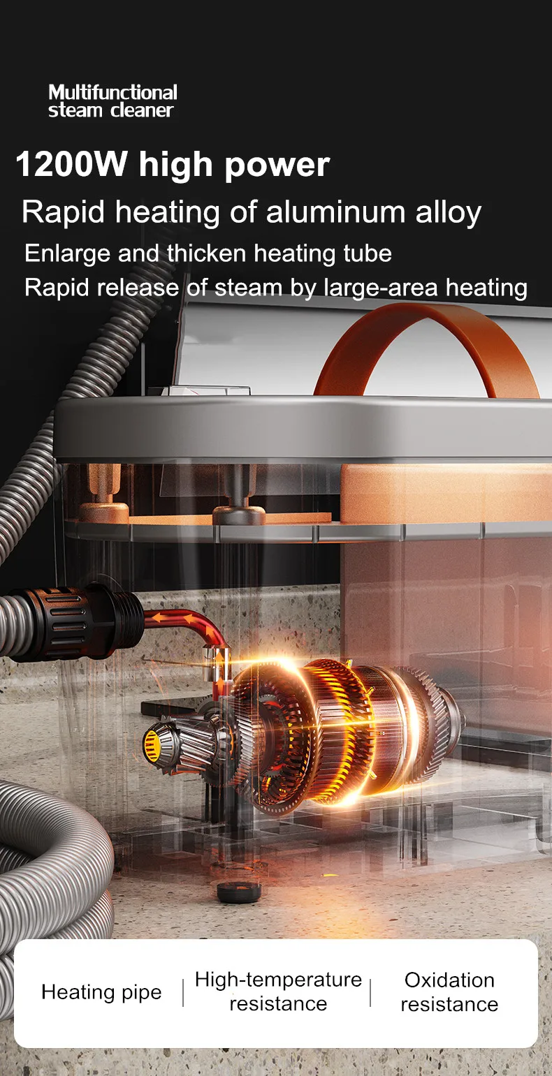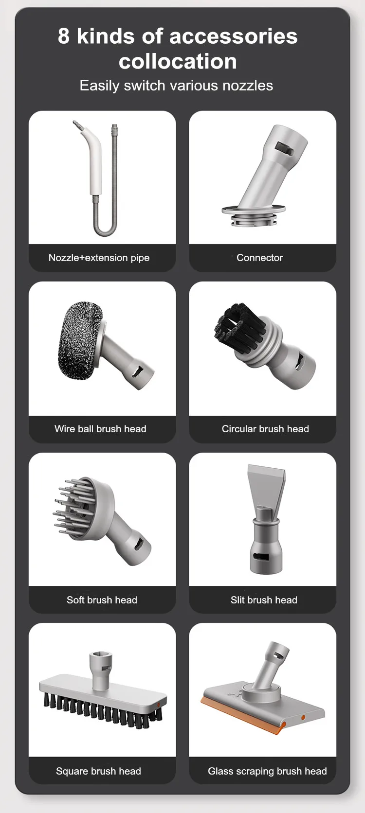 Deep Cleaning Power: The steam cleaner penetrates deep into surfaces to remove dirt, grime, and stains without the need for harsh chemicals.
