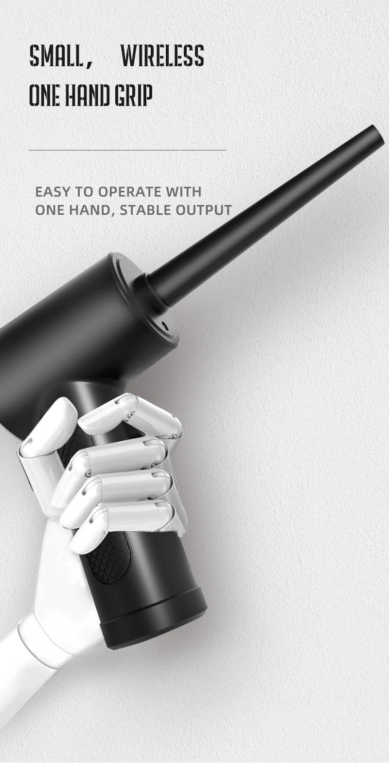 • Compressed Air Duster :This portable cordless air blower is a compressed air duster, perfect for removing dust and crumbs from your computer, keyboard, and car.